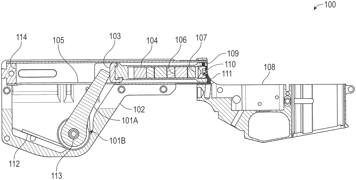 An action system for reducing recoil and muzzle rise in firearms is provided. The action system includes an outer housing having an internal cavity, a buffer tube in operable communication with a bolt carrier group of a firearm, and a slidable buffer within the buffer tube. A lever arm, pivotally secured within the outer housing, is operably connected to the buffer and moves radially under the buffer's force. A spring in the cavity engages with the lever arm, compressing as the lever arm is acted upon by the linear force produced by a bolt carrier group until the spring force exceeds the linear force, thus forcing the buffer in a direction opposite the direction of the linear force.