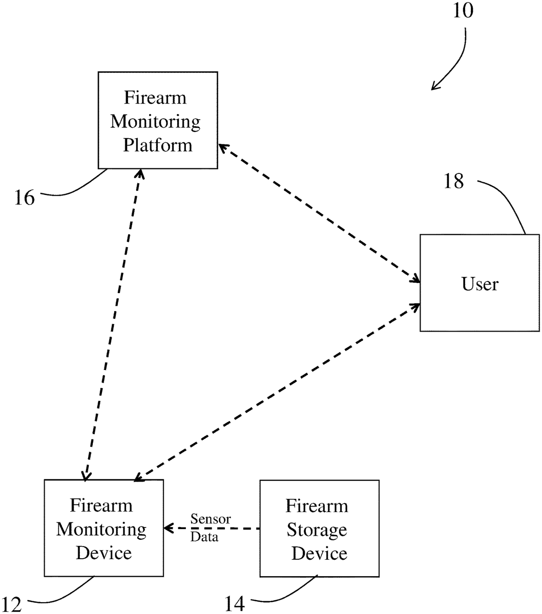 A firearm safety sensing system for the monitoring and detection of firearm movement including a firearm storage device configured to store a firearm, a firearm monitoring device including one or more processors, sensors, and communication interfaces. The sensors are positioned to sense when either the firearm stored in the firearm storage device and/or the firearm storage device changes position relative to the sensors and may detect when the firearm storage device has been opened or unlocked. The processor receives sense signals, determine whether the sense signal represents a change in position of the firearm relative to the sensors, and send, via a communication interface and firearm monitoring device, a change in position notification to the user and may receive instructions to execute from the user. A user may manually or automatically prevent the firearm storage device from being opened. Multi-factor authentication may be enabled if power or communications are disrupted.