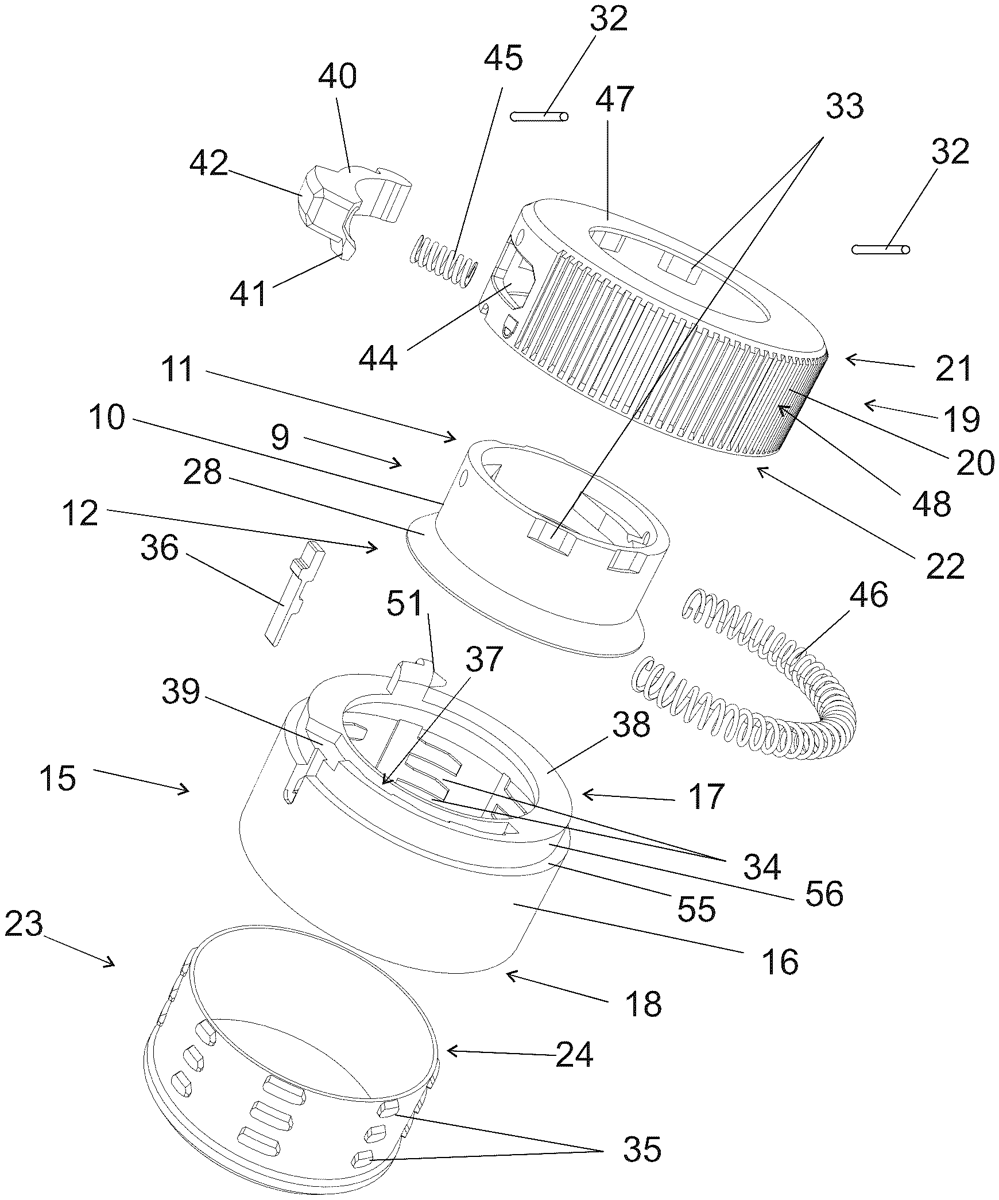 An assembly ( 1 ) for a firearm ( 2 ). The assembly includes a muzzle device ( 3 ) configured to be attached to the firearm ( 2 ), a substantially tubular muzzle adapter ( 9 ), a substantially tubular attachment mount ( 15 ), a substantially tubular clutch collar ( 19 ), and a device ( 23 ) such as a sound suppressor. The device ( 23 ) is releasably attached to the substantially tubular attachment mount ( 15 ) by an attachment device ( 25 ). The muzzle device ( 3 ) is configured to be releasably received in the substantially tubular muzzle adapter ( 9 ). The substantially tubular muzzle adapter ( 9 ) is attached to the substantially tubular clutch collar ( 19 ) for rotation about the longitudinal central axis A together with the substantially tubular clutch collar ( 19 ) with respect to the device ( 23 ), to the muzzle device ( 3 ) and to the substantially tubular attachment mount ( 15 ) between (i) a locking position, and (ii) an unlocking position.