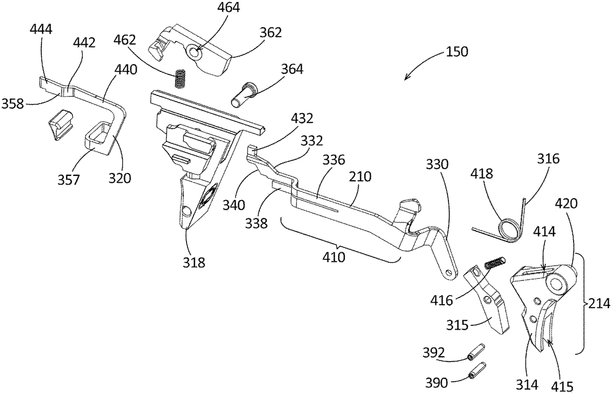 A trigger assembly can include a sear defining a trigger bar engagement surface and a reset notch; and a trigger bar including an upper leg, the upper leg defining a sear engagement surface, the upper leg deflectable from a default leg shape to a disconnected leg shape, the sear engagement surface laterally aligned with the trigger bar engagement surface when the upper leg is in the default leg shape, the sear engagement surface laterally misaligned from the trigger bar engagement surface when the upper leg is in the disconnected leg shape.