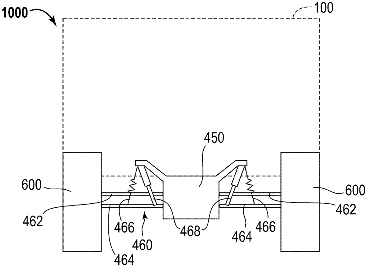 This patent describes a military vehicle featuring a passenger capsule and modular front and rear assemblies, each equipped with gas spring suspensions and dampers. The vehicle’s control system is designed to monitor and adjust the ride height in response to changes in load.