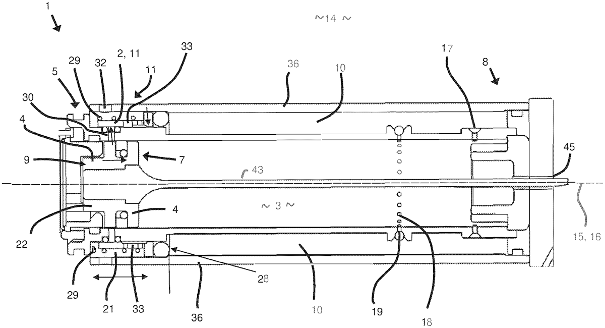 The patent describes a device featuring an exhaust valve that operates using pressurized fluid to manage the movement of a workload within a working chamber. This device includes mechanisms to reduce pressure buildup on the rear surface of the workload, allowing for efficient operation as the workload is propelled between two ends of the chamber.