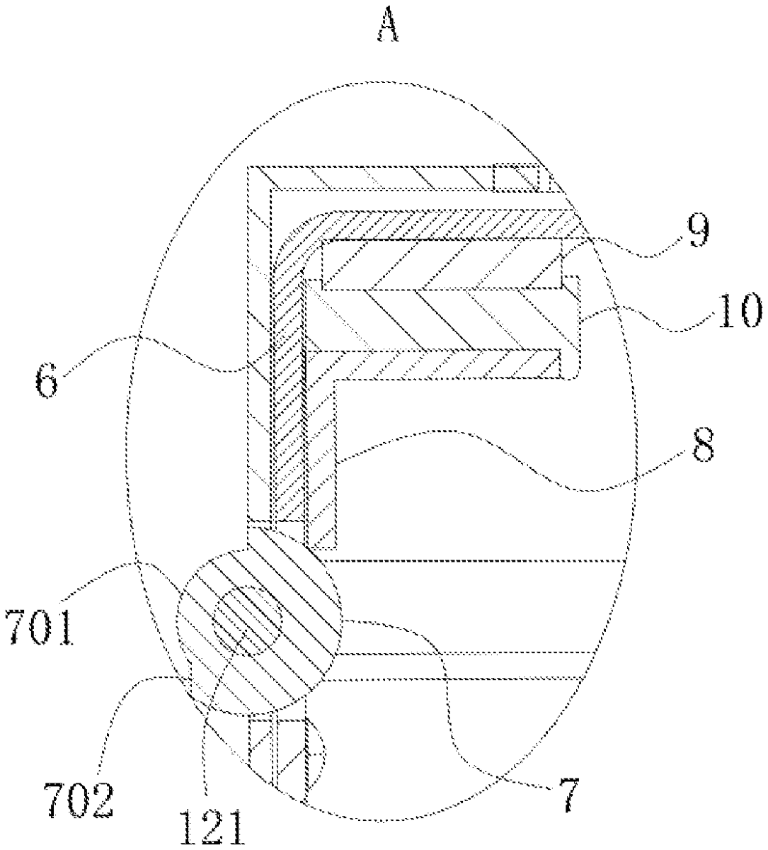 - A weapon storage box with a defense function, comprising a box body upper cover, and a box body lower cover; wherein the box body upper cover and the box body lower cover are rotationally connected and are capable of switching between a closing state and an unfolding state; when in the closing state, the box body upper cover and the box body lower cover define a storage cavity used for storing articles; a box lock is arranged between the box body upper cover and the box body lower cover; the box lock is used for locking the box body upper cover and the box body lower cover in the closing state; any one of the box body upper cover and the box body lower cover is provided with a window, and the other one of the box body upper cover and the box body lower cover is provided with a handle positioned in the storage cavity so that the box body upper cover and the box body lower cover are spliced to form a shield in the unfolding state; an opening and closing locking mechanism is also arranged between the box body upper cover and the box body lower cover; and the opening and closing locking mechanism is used for locking the box body upper cover and the box body lower cover in the unfolding state; wherein the opening and closing locking mechanism comprises an opening and closing lock pin and a lock pin clamping plate: the opening and closing lock pin is fixedly connected to one of the box body upper cover and the box body lower cover, and the lock pin clamping plate is movably connected to an other one of the box body upper cover and the box body lower cover: an elastic force is applied to the lock pin clamping plate all the time through an elastic piece; and the opening and closing lock pin is provided with a clamping stopping position: when the box body upper cover and the box body lower cover are in a non-unfolding state, the lock pin clamping plate is outside the clamping stopping position of the opening and closing lock pin; and when the box body upper cover and the box body lower cover are in the unfolding state, the lock pin clamping plate falls into the clamping stopping position through the elastic force of the elastic piece, and accordingly locking is realized. wherein the box body upper cover and the box body lower cover are rotationally connected and are capable of switching between a closing state and an unfolding state; when in the closing state, the box body upper cover and the box body lower cover define a storage cavity used for storing articles; a box lock is arranged between the box body upper cover and the box body lower cover; the box lock is used for locking the box body upper cover and the box body lower cover in the closing state; any one of the box body upper cover and the box body lower cover is provided with a window, and the other one of the box body upper cover and the box body lower cover is provided with a handle positioned in the storage cavity so that the box body upper cover and the box body lower cover are spliced to form a shield in the unfolding state; an opening and closing locking mechanism is also arranged between the box body upper cover and the box body lower cover; and the opening and closing locking mechanism is used for locking the box body upper cover and the box body lower cover in the unfolding state; wherein the opening and closing locking mechanism comprises an opening and closing lock pin and a lock pin clamping plate: the opening and closing lock pin is fixedly connected to one of the box body upper cover and the box body lower cover, and the lock pin clamping plate is movably connected to an other one of the box body upper cover and the box body lower cover: an elastic force is applied to the lock pin clamping plate all the time through an elastic piece; and the opening and closing lock pin is provided with a clamping stopping position: when the box body upper cover and the box body lower cover are in a non-unfolding state, the lock pin clamping plate is outside the clamping stopping position of the opening and closing lock pin; and when the box body upper cover and the box body lower cover are in the unfolding state, the lock pin clamping plate falls into the clamping stopping position through the elastic force of the elastic piece, and accordingly locking is realized.
