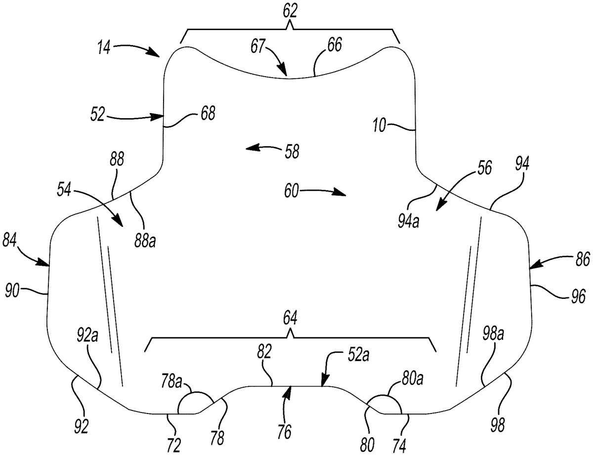 The patent describes a ballistic vest featuring a protective shell and an insert designed with a main body that includes lateral sides and a uniquely shaped bottom edge with convex transitions. This design aims to enhance the fit and comfort of the vest while providing effective protection.