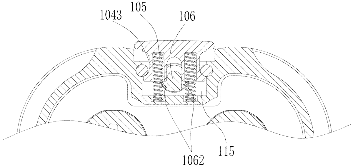 The patent describes a downward hanging type lamp designed for mounting on a firearm’s handguard using an M-LOK slot, featuring a detachable battery and a locking screw mechanism for secure attachment. It includes a battery replacement button that facilitates easy battery changes while ensuring the locking screw’s head remains flush with the battery mounting groove for streamlined integration.