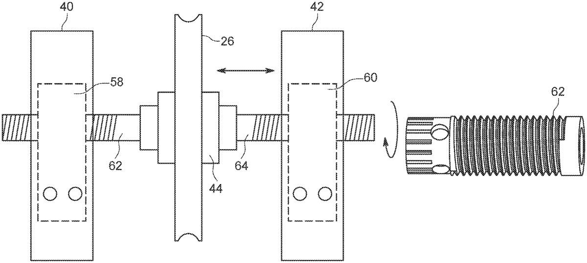 1 . A compound bow comprising: a cam; a resilient limb having a space for mounting the cam; a first limb bracket and a second limb bracket connected to the resilient limb; an axle extending through the cam the axle having two opposing externally threaded ends; a first cam spacer and a second cam spacer, each having internal threads that are screwed onto respective externally threaded ends of the axle to secure the axle to the first cam spacer and the second cam spacer, a first end of the first cam spacer abutting a first side of the cam, and a second end of the second cam spacer abutting a second side of the cam, wherein the first cam spacer has a first external thread and the second cam spacer has a second external thread; and a third end of the first cam spacer extending through the first limb bracket, and a fourth end of the second cam spacer extending through the second limb bracket, whereby the cam is laterally moved within the space in the limb by shifting the first cam spacer and the second cam spacer with respect to the first limb bracket and the second limb bracket. a cam; a resilient limb having a space for mounting the cam; a first limb bracket and a second limb bracket connected to the resilient limb; an axle extending through the cam the axle having two opposing externally threaded ends; a first cam spacer and a second cam spacer, each having internal threads that are screwed onto respective externally threaded ends of the axle to secure the axle to the first cam spacer and the second cam spacer, a first end of the first cam spacer abutting a first side of the cam, and a second end of the second cam spacer abutting a second side of the cam, wherein the first cam spacer has a first external thread and the second cam spacer has a second external thread; and a third end of the first cam spacer extending through the first limb bracket, and a fourth end of the second cam spacer extending through the second limb bracket, whereby the cam is laterally moved within the space in the limb by shifting the first cam spacer and the second cam spacer with respect to the first limb bracket and the second limb bracket.