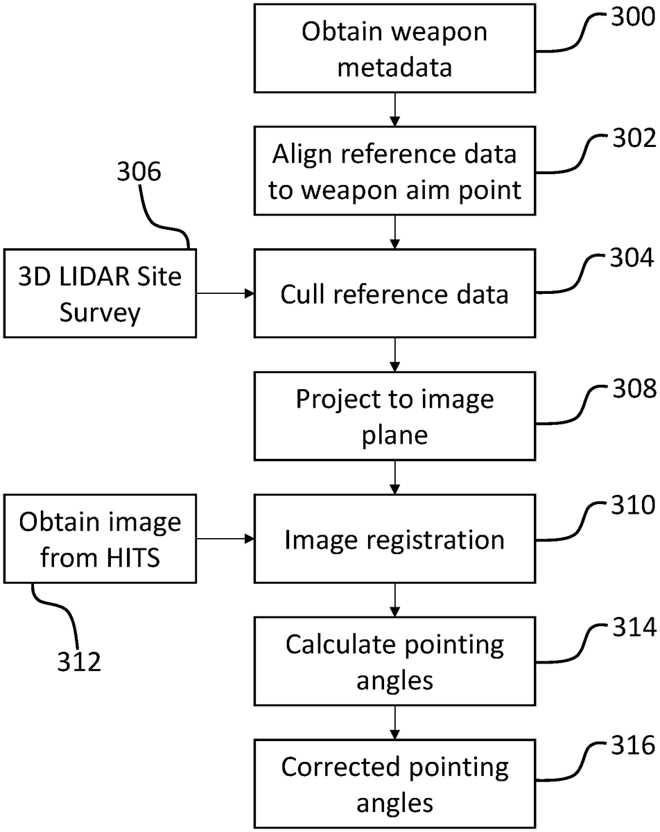 The patent describes a high-precision infantry training system that utilizes a weapon-mounted camera and inertial measurement unit to accurately determine the point-of-impact of a ballistic projectile. The method involves detecting a firing event, processing reference images, and calculating true pointing angles based on the alignment of images captured during the firing.