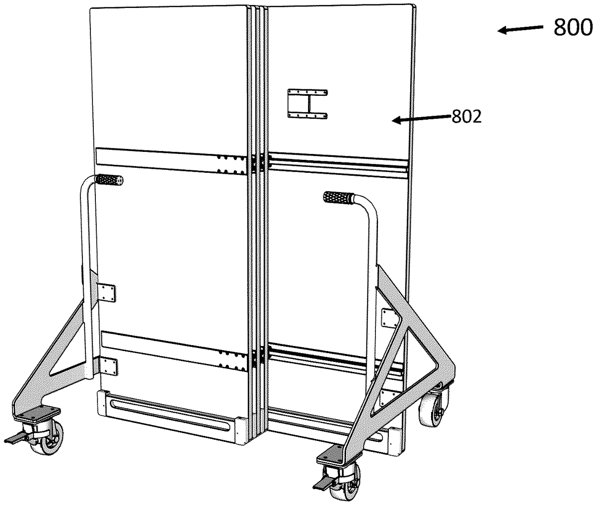 The patent describes a mobile expandable ballistic barrier apparatus that includes multiple panels supported by wheeled frames, allowing for easy transport and deployment. In its stored position, the panels align parallel and coplanar, optimizing space and facilitating rapid setup when needed.