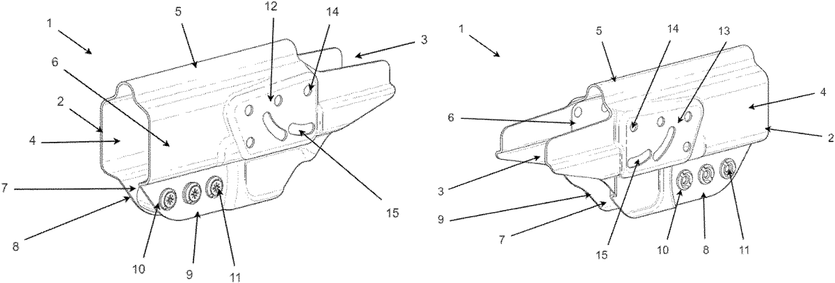 The patent describes an adjustable and interchangeable holster designed to securely retain a handgun while allowing for compatibility with various holster accessories. It features two adjustable attachment formations that enable the holster to be easily modified for use by both left- and right-handed users.