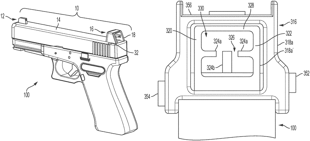 The patent describes a rear sight for firearms that features a combined sight and optic mount with a unique aperture frame design, allowing for improved aiming accuracy. It includes a movable sub-frame and planar aiming reference members that enhance alignment and targeting capabilities.
