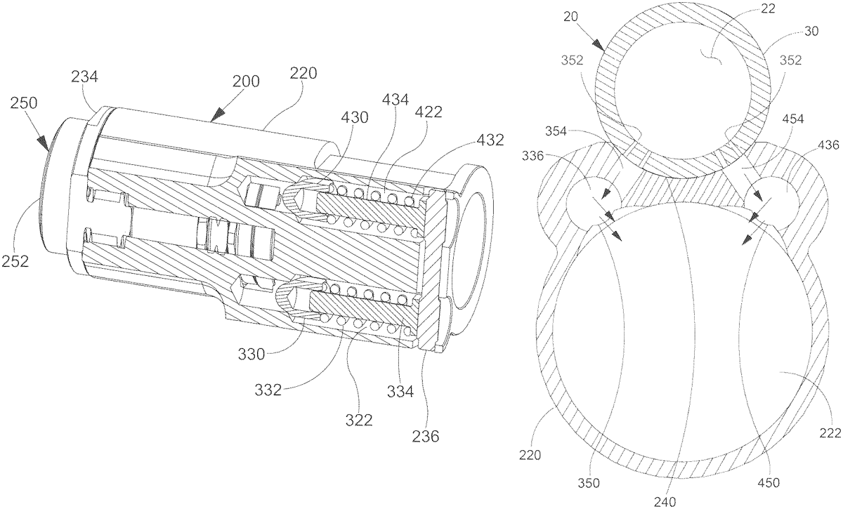 The patent describes a semi-automatic shotgun featuring a unique gas block assembly with dual pressure relief valves that regulate gas pressure during operation, enhancing consistency across various shotshell power levels. This design includes a breech block mechanism that efficiently loads and ejects shells, ensuring reliable cycling of the firearm.