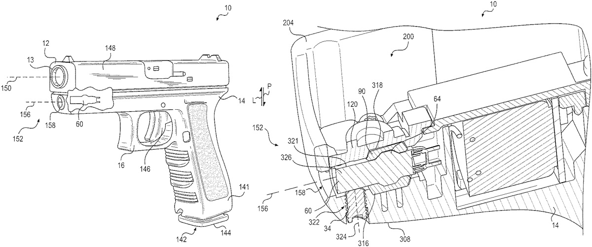 The present disclosure relates to a firearm which may include a frame with a first outer wall, and a second outer wall opposite the first outer wall. A laser module may be disposed between the first and second outer walls. An alignment pin may be in communication with the first outer wall and may be configured to move the laser module relative to the frame.