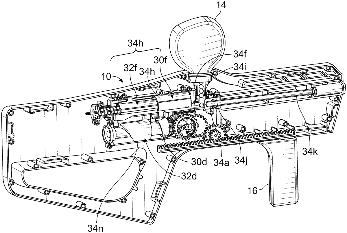 Launcher apparatus and methods of a toy projectile blaster piston air compression element and breech bolt operating through a barrel cam peripheral surface with a cylinder cam pathway track and piston cam pathways for driving contact and respective piston and cylinder timings. The barrel cam is rotatably disposed. Piston and cylinder follower ends contact the barrel cam pathways generating fluid communication to outwardly launch received projectile rounds. The breech can receive projectiles with the breech bolt of the air compression element extending into the breech to position a received projectile through the barrel seal, and a source of rotary motion or forward strokes and back strokes fires the projectiles.