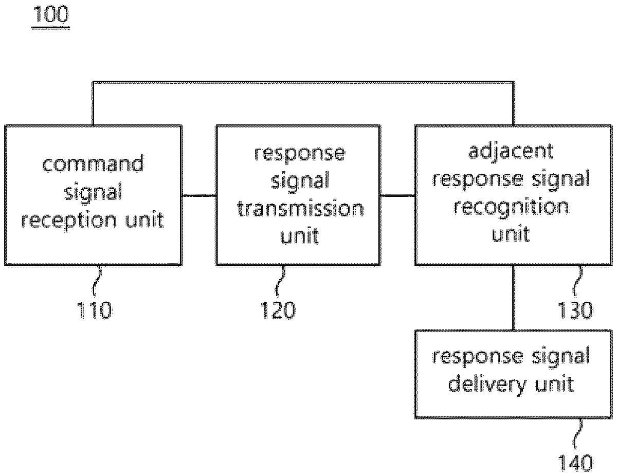 A device and a method thereof for operating an electronic detonator having a response relay function are proposed. The device includes a command signal reception unit configured to receive a command signal transmitted from a blasting control system, a response signal transmission unit configured to transmit a response signal responsive to the received command signal to the blasting control system, and a response signal delivery unit configured to transmit the corresponding response signal to the blasting control system when a response signal of another electronic detonator adjacent within a preset distance is recognized.