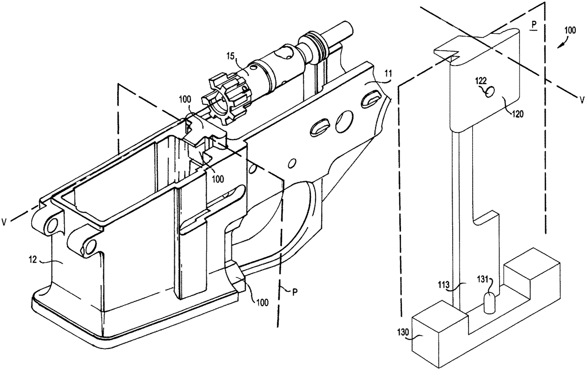 Firearms including a bolt catch device, having a receiver comprising a duct, wherein the bolt catch device comprises a foot, a slider, and a spring, and the foot, on the leg thereof and on the magazine well side, has a groove for receiving the spring and, on the side facing the trigger device, has a socket; wherein the slider has, on the lower portion thereof, bearing bolts for being inserted into and pivoted in the socket, wherein the slider has, at the upper end thereof, a protrusion which protrudes in the direction of the magazine well beyond the contour of the duct, and wherein the receiver has an abutment that protrudes into the groove in order to prestress the spring of the bolt catch into the rest position.