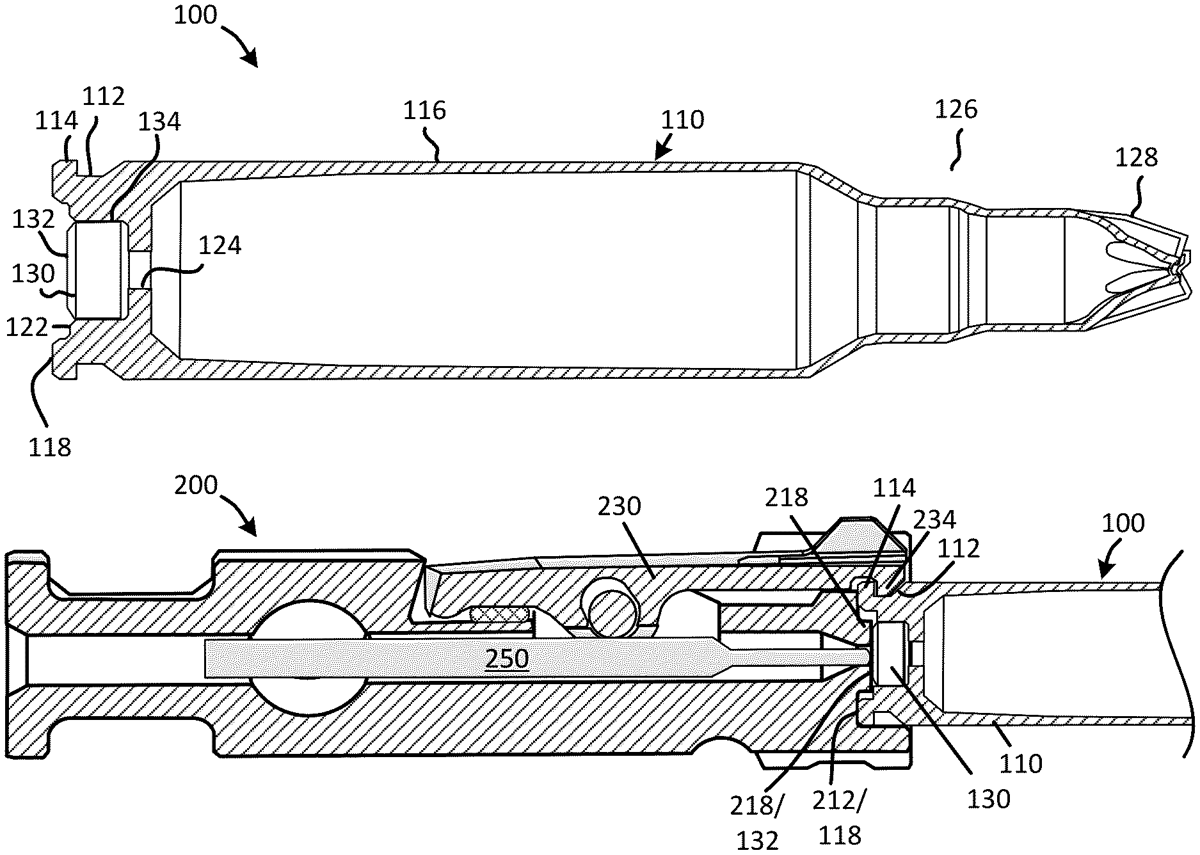 An ammunition cartridge casing has a casing base with a proximal end surface, a casing body defining an inside volume, and a distal end portion. The casing base defines a primer pocket in communication with the inside volume of the casing body, where the primer pocket is sized and configured such that when a primer is installed in the primer pocket, a proximal face of the primer is recessed into the base at least 0.010″ with respect to the end surface. Blank ammunition made with the cartridge casing is configured for use with a rifle having a bolt with a boss on the breech face that corresponds to the recessed primer.