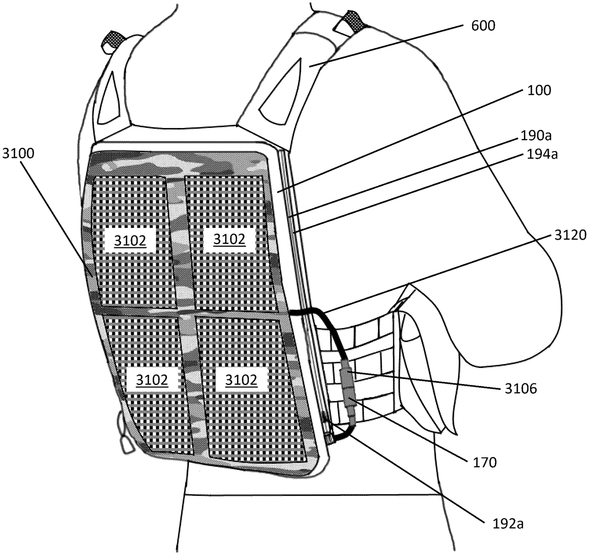 A system for supplying power to a portable battery pack including a battery enclosed by a wearable and replaceable pouch or skin using at least one solar panel is disclosed, wherein the pouch or skin can be provided in different colors and/or patterns. Further, the pouch or skin can be MOLLE-compatible. The battery comprises a battery element housed between a battery cover and a back plate, wherein the battery element, battery cover, and back plate have a slight curvature or contour. Further, the battery comprises flexible leads.