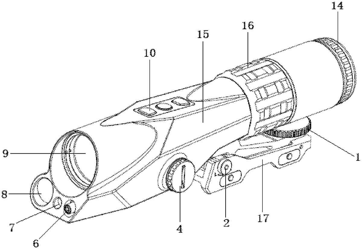 The invention relates to a ranging and ballistic display optical sight featuring a mounting bracket, control mainboard, laser emitter, and receiver. An objective lens group and beam splitter prism are arranged coaxially, with the prism positioned above the laser receiver. The laser beam emitted is reflected by the prism into the receiver. A digital reticle plate, aligned with the optical path, displays the range data. The control mainboard calculates distance based on the time difference between laser emission and reception, then displays the result on the reticle. This system enhances shooting precision and efficiency.