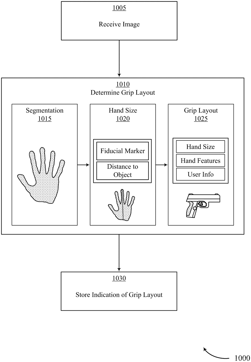 The present disclosure provides systems and techniques for determining a grip layout for a gun. The techniques include obtaining an image depicting a hand, obtaining calibration data associated with the image, calculating a real distance between a first landmark of the hand and a second landmark of the hand, and determining a grip layout for the gun based on the real distance between the first landmark and the second landmark. Calibration data may include a scale for the image or data that may be used to derive the scale, such as an object of known dimensions, an angular field of view, or a distance between the device used to capture the image and the hand. The grip layout may include a backstrap size, a sensor size, a sensor location on the gun, or any combination thereof.