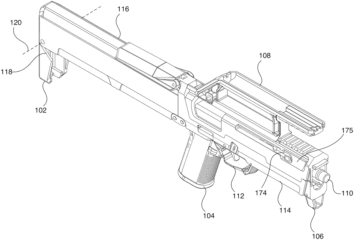 The present disclosure describes a foldable firearm that collapses into a folded state under spring pressure. The foldable firearm may include a foldable grip assembly. The foldable grip assembly may include a foldable pistol grip, a foldable trigger assembly, a folding bar, and a foldable hand stop. The foldable grip assembly may fold into the top shell of the foldable firearm. The foldable firearm may also include an ambidextrous charging handle assembly that may include a bottom portion, a top portion, a guide bar, and two opposing charging handles. The charging handles may be pulled to unfold the foldable firearm, and/or butterflied such that pivoting one charging handle causes the other charging handle to pivot. The first-pivoted charging handle may then be pulled rearwards to unfold the firearm. The first-pivoted charging handle may then be pulled further rearwards to rack the slide of the foldable firearm.