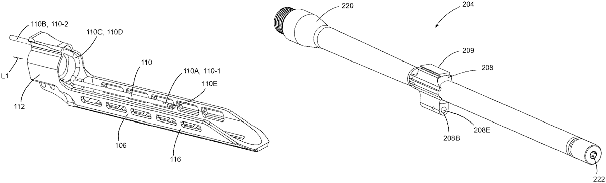 A forend kit or firearm comprising same may include a forend and a gas tube. The forend has a mounting body and a hand-gripping body extending from the mounting body. A first portion of the gas tube extends from a first end of the gas tube to a central portion of the gas tube and a second portion of the gas tube extends from a second end of the gas tube to the central portion. The central portion includes an arcuate segment vertically offsetting the first portion of the gas tube from the second portion of the gas tube (e.g., a 180 degree curvature). The first and second portions of the gas tube may extend parallel to each other. A discharge gas passage of the gas block and/or the barrel may include a circumferential portion for allowing angular clocking between the gas block and the barrel.