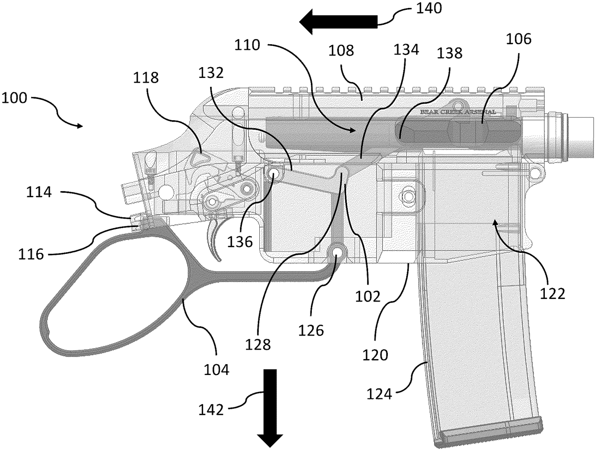 Lever action firearms having a linkage assembly for pivotally connecting its action lever to its bolt carrier assembly and associated methods are disclosed. The lever action firearm includes a bolt carrier assembly received in an upper frame and operable to reciprocate between an open position and a closed position. The bolt carrier assembly includes a first pivot. A lower frame defines a magazine well configured to removably receive a box magazine. The lever action firearm includes an action lever movable between a retracted position and an extended position. The action lever includes second and third pivots. The action lever is pivotally connected to the lower frame at the second pivot. The lever action firearm also includes a linkage assembly is pivotally connected to the action lever at the third pivot, wherein the linkage assembly is pivotally connected to the bolt carrier assembly at the first pivot.